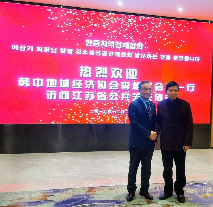 2019年12月20日江苏省公共关系协会会长黄世平等在协会研学基地-南京容大盛宴酒店会见了韩中地域经济协会李相基会长一行。 黄世平会长首先对李相基…