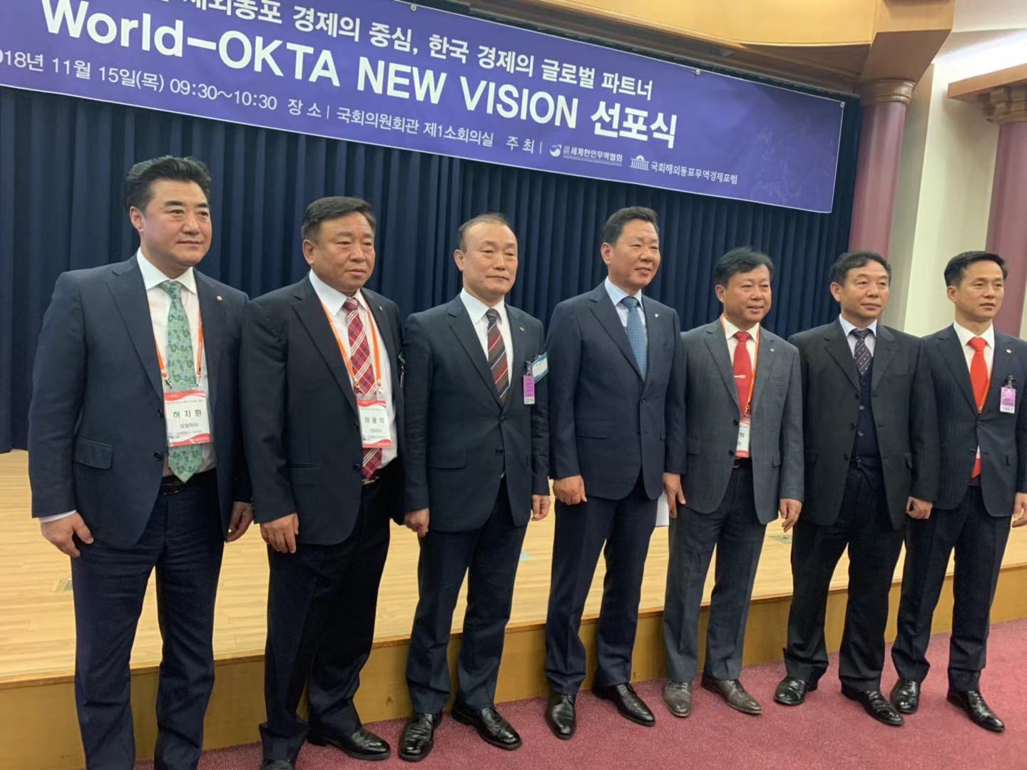 韩中地域经济协会协会会长李相基参加了11月15日在国会议员会馆小会场举行的"World-OKTA New Vision宣布仪式",与主要国家…