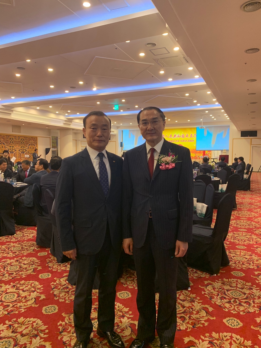 新中国成立70周年之际,中华人民共和国驻韩国光州总领事管于25日在光州市无等酒店举办庆祝70周年招待会,韩中地域经济协会会长李相基作为中韩交流友…