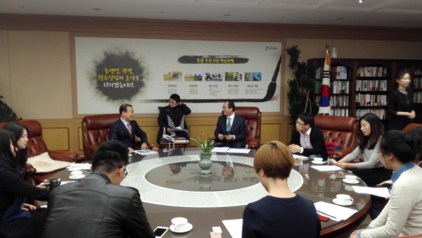 12일 오후 5시 기자단은 전라도 송하진 도지사를 예방, 전북의 전통문화 보존을 위한 방안 등에 대해 질의하였다.