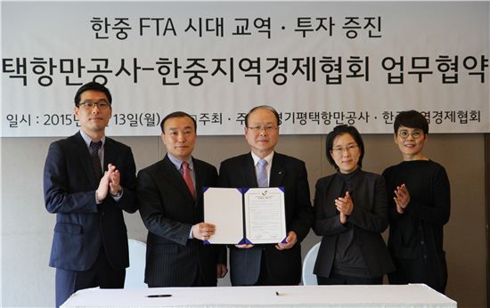 한중지역경제협회(회장 이상기)는 경기평택항만공사(사장 정승봉)와 13일 서울 프레스센터에서 한중 간 경제교류 활성화를 위한 업무협약(MOU)을 체결했다.협약 내용은 ▲항만 물류 산업의 지속적인 정보 교류 ▲양국 기업 간 상호교류 및 다양한 활성화 사업 추진ㆍ협력 지원 ▲인적교류 및 교육지원, 우수 프로그램 공동 발굴 및 개발 ▲상호 발전을 위한 정보교환 등이다.