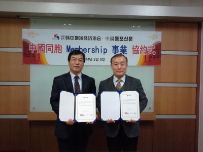 이날 협회와 동포신문은 한중간 공공외교 활성화 및 지역 및 중소기업 교류 활성화 측면에서, 중국동포를 위한 이벤트 사업과 국내 중소기업의 중국 유통진출 등 다양한 협력사업을 추진하기로 했다.