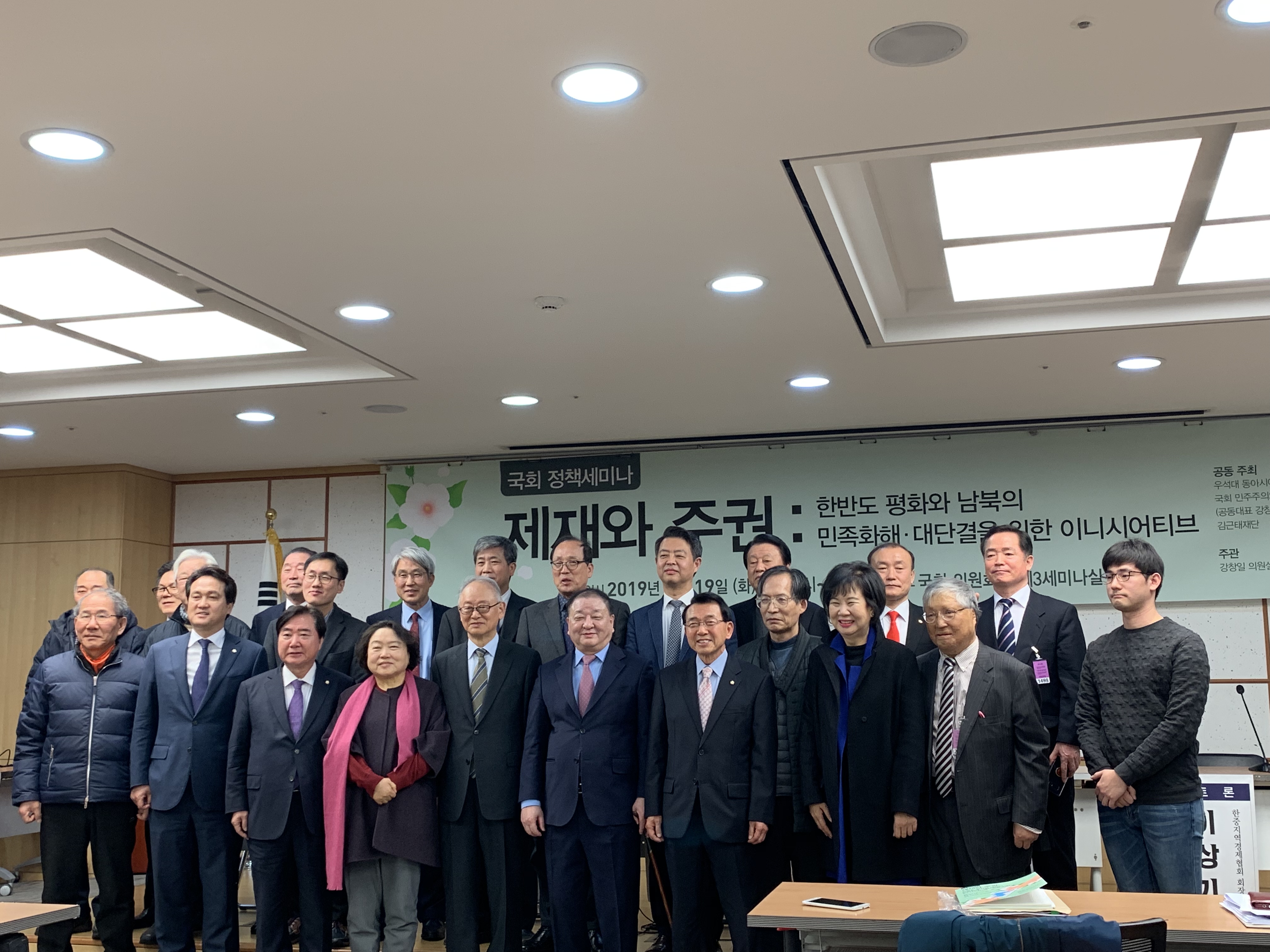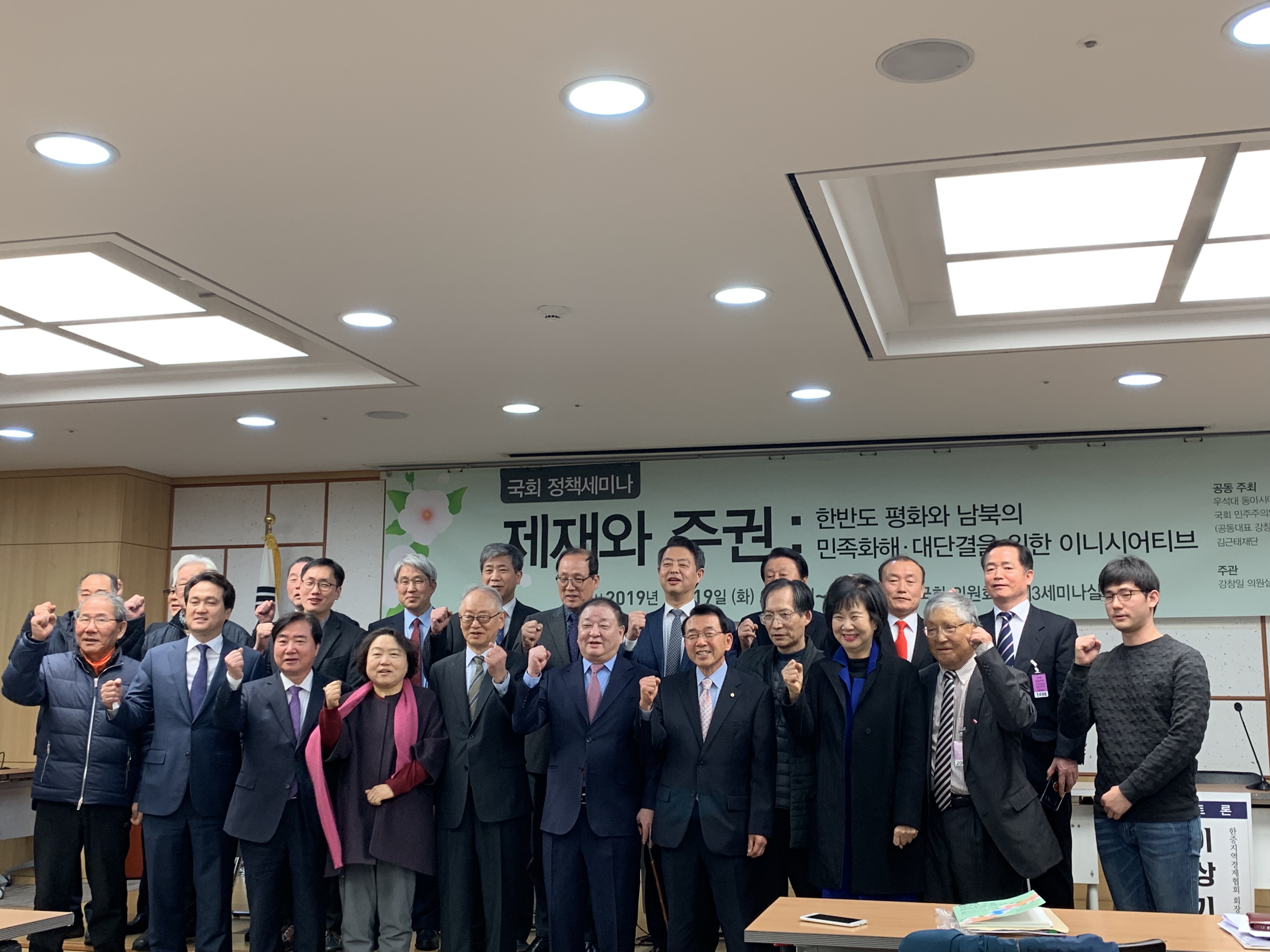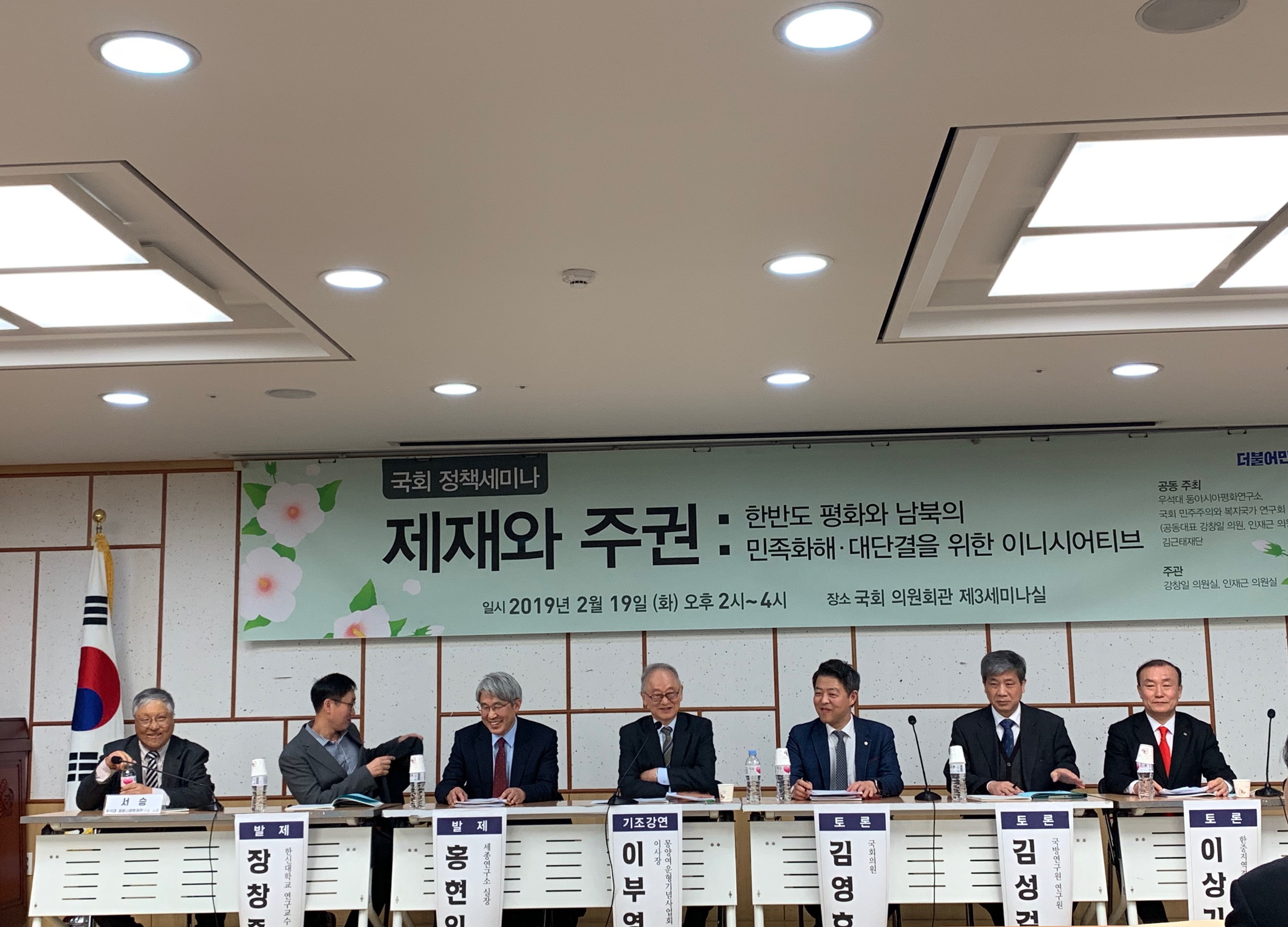 또한, 홍현익 세종연구소 연구실장과 장창준 한신대학교 연구교수가 ‘독일 통일의 예에서 본 국제관계의 갈등과 자국적 이니시어티브의 과제’와 ‘2019년 한반도 평화실현의 조건-대북제재, 어떻게 풀 것인가?’라는 주제로 각각 발제했으며, 김영호 의원과 김성걸 한국국방연구원 연구원, 이상기 한중지역경제협회장이 토론에 나섰다. 장영달 총장은 개회사를 통해 “오늘의 뜻깊은 세미나를 통해 ‘4대 강국에 둘러싸인 우리 대한민국은 유엔의 제재라는 틀 속에서 때로는 속수무책으로 헤맬 수밖에 없는 운명인가!’에 대하여 해답을 찾고 실천할 수 있는 역사적인 변곡점을 도출하였으면 좋겠다”라고 말했다.