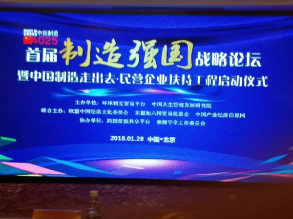 제 1회 '제조 강국'전략포럼이 환구상업연맹과 중국공생관리발전연구원 주관으로 1월 28일 북경에서 거행되었다.포럼 개막식 연사로 전 중국 상무부 위건국 부부장의 축사에 이어 공동 주최 기관 대표들의 중국제조업 해외진출간 민영기업지지발대식이 거행되었다.
