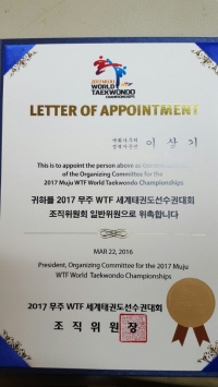 한중지역경제협회 이상기 회장은 2016년 3월 22일, 전주 르윈호텔에서 개최한 2017년도 제 23회 세계태권도선수권 대회 조직위 창립총회에서 조직위 위원으로 위촉되었다.