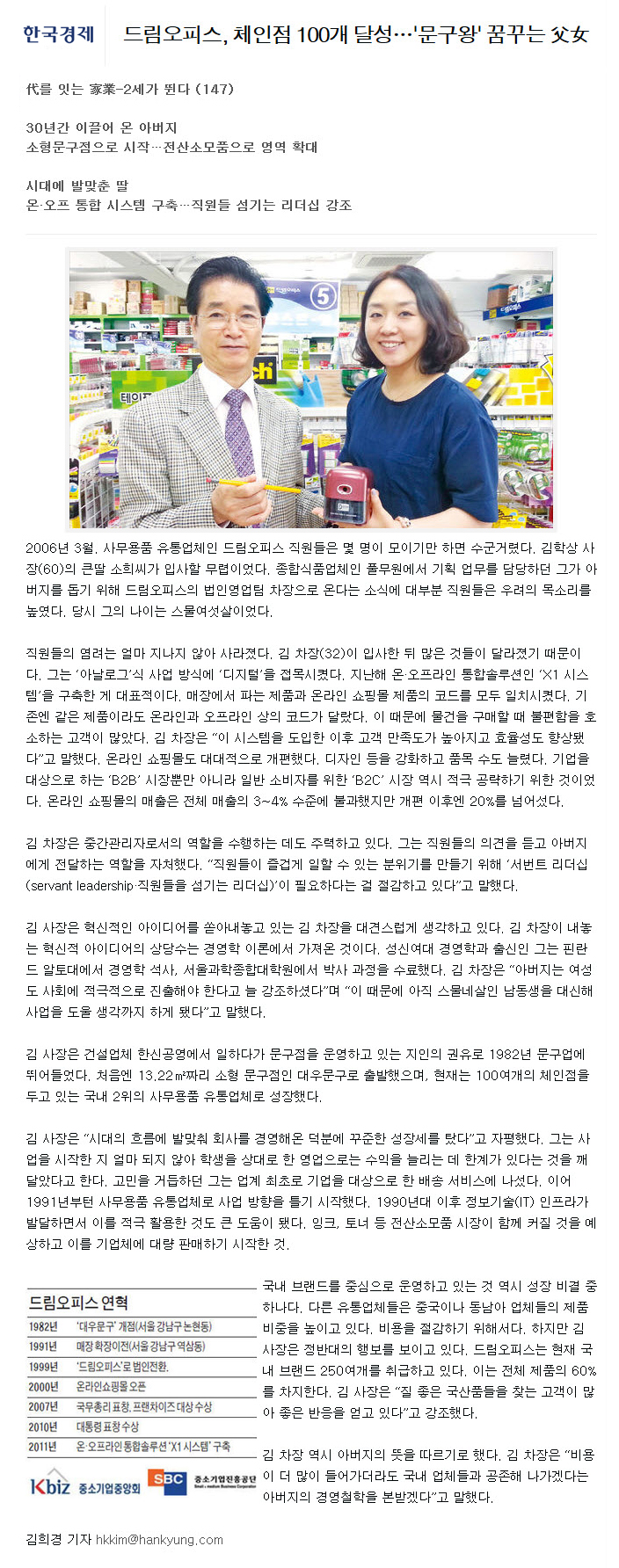 협회 이사단위인 드림오피스(www.dreamoffice.com) 금년도 7월부로 "국내 체인점 100개 시대"를 열었으며, 상호 그대로 대한민국을 대표하는 "문구왕" 을 꿈꾸고 있다. 30년 전 소형 문구점을 시작한 드림오피스는 현재 온라인과 오프라인을 구축하여, 전산소모품, 오피스용품, 일상생활용품을 아우르는 전방위용 소모품 전문용품점으로 부상하고 있으며, 단순한 B2B 상거래를 벗어나 B2C로까지 업무영역을 지속적으로 확장 하고 있다. 드림오피스는 이를 계기로 중국을 비롯한 동남아 시장 개척을 준비 중에 있으며, 한중지역경제협회 지원으로 사천성 청두 <2013년도 중국프랜차이즈 및 편의점 전시회> 참가를 시발점으로 중국 시장 개척에 심혈을 기울일 예정이다.
