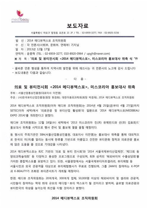 2014 뷰티엑스포, 미스코리아 홍보대사 위촉