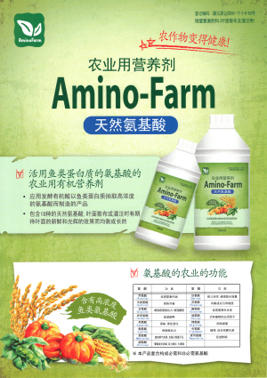 특히 어류단백질에서 추출된 천연 아미노산은 화학영양제에 비해 작물의 성장을 빠르게 유도하는 등의 효능이 입증되었다. <아미노팜>은 작물생육 면에서 숙기촉진, 당도증가, 일조량 부족 시 정상적인 성장, 과중 증가를 가져오며 병충해를 막는 등 놀라운 효능을 보인다. 어류 특정부분만 소량 사용하여 아미노산을 추출하던 기존의 제품과는 달리 <아미노팜>은 전 어체를 사용하므로 어류 단백질 상의 모든 아미노산이 존재하여 각각의 아미노산이 가진 고유의 기능을 농작물에서 구현할 수 있다는 특징이 있다.