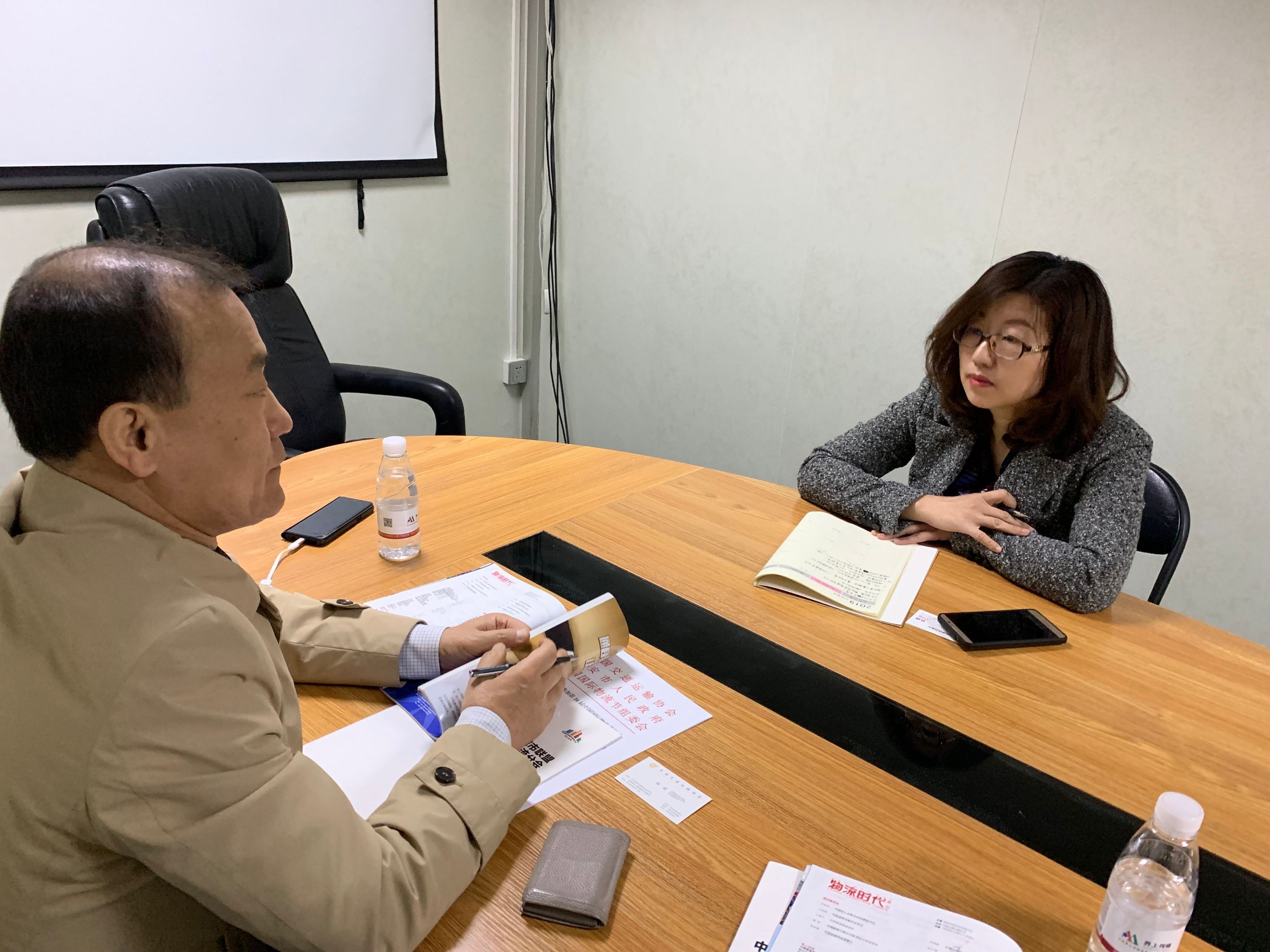 韩中地域经济协会会长李相基4月3日拜访中国交通协会,与副秘书长陆莉女士就中韩物流等方面问题进行会谈。