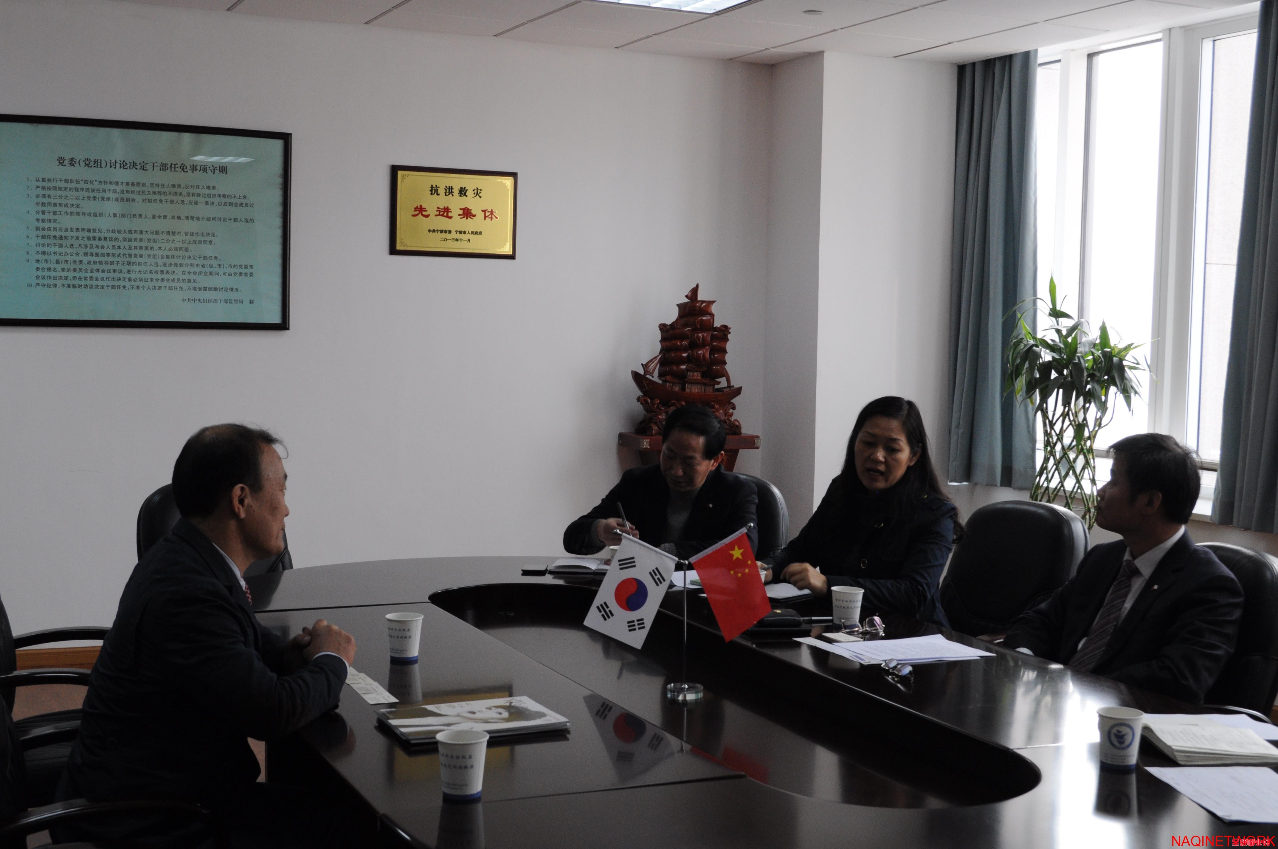 面对李会长提出的相关展览会方面的问题,俞丹桦局长分别推荐了每年中旬在宁波举办的“中国国际日用品消费博览会”和十一月左右的“中国食品博览会”。“消博会”作为宁波规模最大的国际展会,所展出的商品包罗万象,在中国会展圈中早已名声大振,来自超过一百个国家的外商参与其中,不仅向个人展示了企业的产品和风采,更促进了企业间的合作发展。而“食博会”历经了多年的发展,从开始只有十几个摊位到去年为止包罗国内外各色知名小吃,早已经成为了甬城人每年参加的盛事。在会上还俞丹桦局长向李会长引荐了宁波市对外经济贸易企业协会的林宗耀会长,外商投资促进处的魏仁灿处长和外经贸局的吴知芯女士,希望通过双方的努力将韩中两国的经济拉升到更高的一个层次。同时向李会长提出了三点建议,第一希望李会长了解中国国情,熟知第十三届三中全会所提出的关于互联网这个平台的相关规则,与宁波纳奇网络科技有限公司的合作取得成功。第二多组织韩国企业来甬参加各项博览会,加强两国经济交流。第三宁波政府会大力支持韩国企业来甬投资,并给予全程服务,希望韩国人民也感受到中国人的热情,在异地感受到家的温暖。