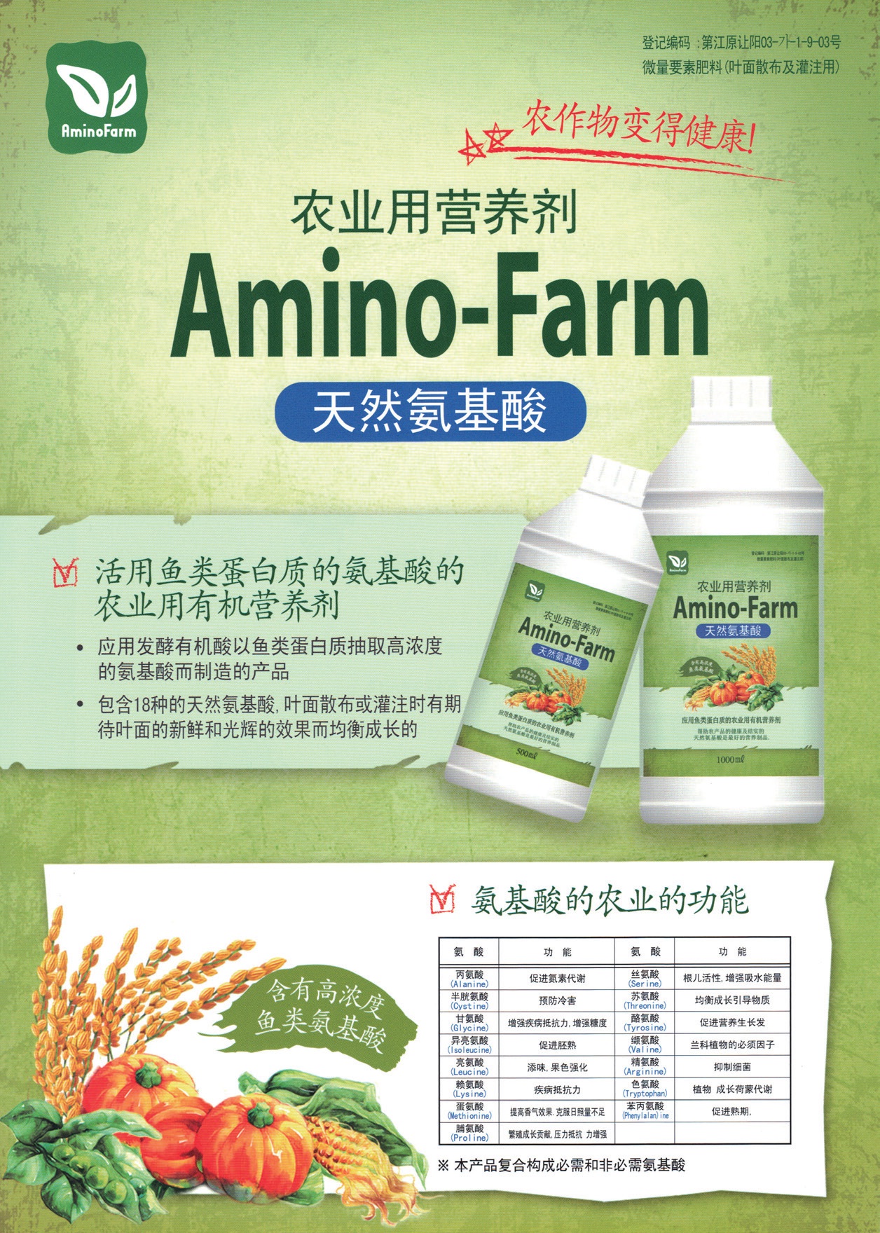 江原道农业技术园评价,此营养剂含有18种可以强化农作物耐病能力的氨基酸,对农作物有促进成熟、提高糖度、增加重量的效果。
