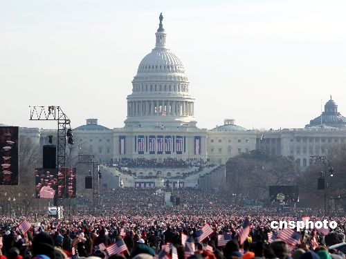 资料图:当地时间2009年1月20日,美国第56届(第44任)总统奥巴马的就职典礼举行,华盛顿国会山前成为欢乐的海洋。中新网1月11日电据美国媒体10日报道,美国首都华盛顿正准备迎接四年一度的总统就职典礼,负责就职典礼工作的国会官员表示,准备工作一年前就开始了。不过总统奥巴马第二次就职典礼的规模要小于四年前。据介绍,2013年奥巴马的公开就职典礼将在1月21日举行,他的第二个任期在前一天已经开始,但20号是星期天,因为被推迟。预计这次就职典礼的观礼人数会大大少于四年前,大约在60万到80万人之间。而在2009年1月,创纪录的180万人涌入华盛顿国家大草坪观看美国历史上第一位黑人总统的就职典礼。施瓦茨少将将指挥有6000人的国民警卫队维持秩序。他说,准备工作并没有减少。施瓦茨说:“虽然民众人数减少,但我们仍然要做好准备应对可能发生的事情。” 总统就职典礼将在国会山举行。国会的一个联合委员会花费了120万美元搭建就职宣誓台和其它设施。据悉,奥巴马宣誓演讲完毕后,要参加一个国会午餐会,接下来的活动由总统就职委员会接手。他们负责就职典礼的游行和其它活动。观礼台的搭建工作在2012年11月总统大选不久后就开始了。总统将在这里观看游行活动。所有工程将在就职典礼前完工,并在就职典礼后第二天拆除。美国各军种通过一个联合委员会协调参与就职典礼活动。数千名军人将参加就职仪式,包括仪仗队,军乐队和骑兵等。陆军少将麦克尔·李宁顿是骑兵队伍指挥。他说,军队的参与象征着和平的权力移交。李宁顿说:“这是我们的力量和民主的象征,我认为对我们来说在全世界面前展现这种力量非常重要。”这个军方联合委员会为了确保他们的工作尽善尽美,制作了一个华盛顿大型地图。军人们使用这个地图来制定行动计划,包括人员输送,更重要的是确保总统和民众的安全。